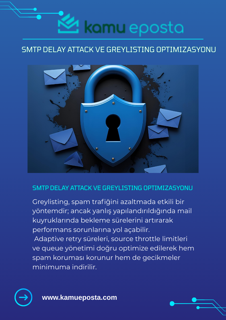 Bu saldırılar özellikle greylisting kullanılan ortamlarda daha belirgin hale gelir çünkü sistem, bilinmeyen göndericileri belirli bir süre beklettikten sonra tekrar denemelerini ister. Yoğun trafik altında bu bekleme mekanizması yanlış ayarlandıysa mail queue hızla büyüyebilir.